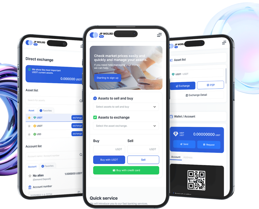 JP World Group is more than just a wallet. With top- tier security systems and a transparent value guarantee through a 1:1 JPY peg (jpys), it is a trusted digital banking solution to safely deposit, manage, and operate your valuable digital assets.